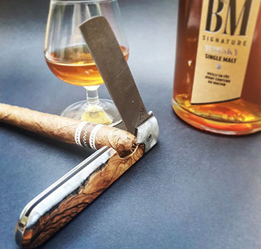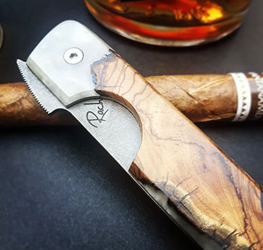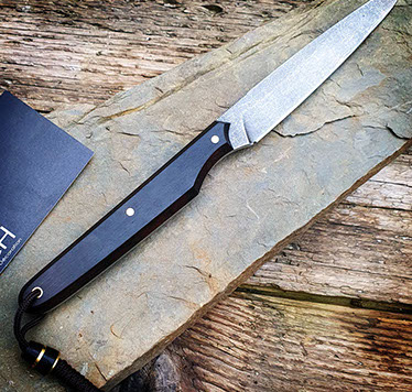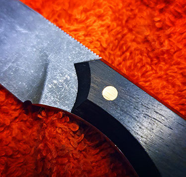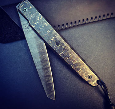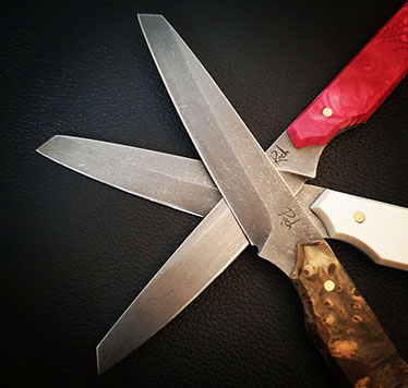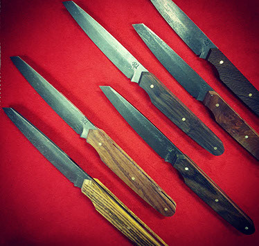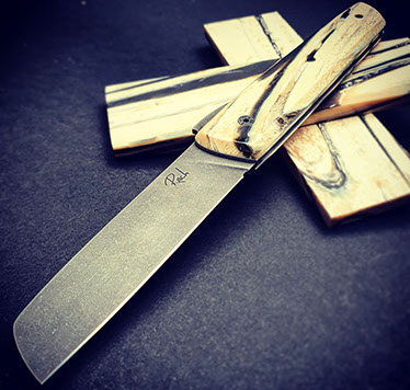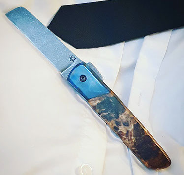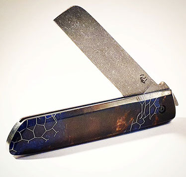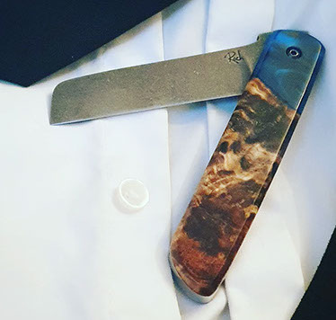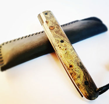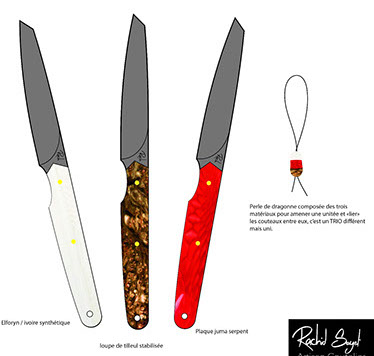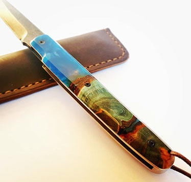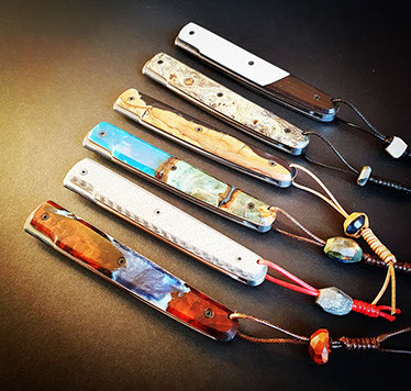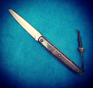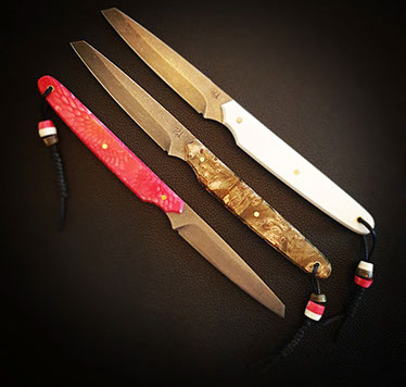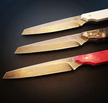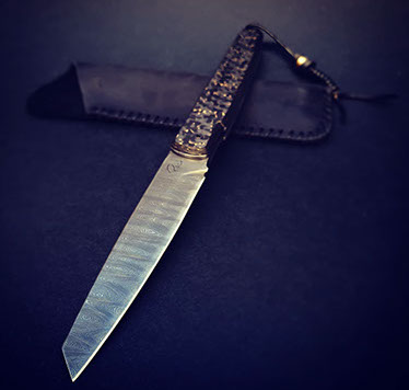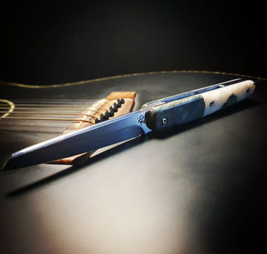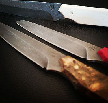 Je travaille principalement à la commande sur des couteaux dessinés et personnalisés.