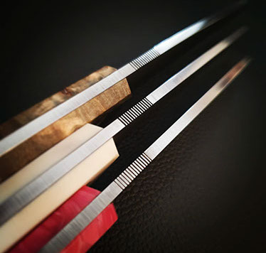 Voici mes modèles directement commandables, vous pouvez néanmoins personnaliser les plaquettes du manche (bois, carbone, micarta, matières synthétiques...